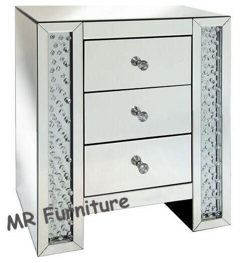 Crystal Diamond Design Mirrored Chest of Drawer Bed Side Table Images |