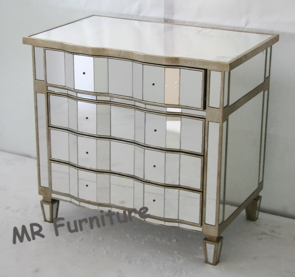 Moscai Style Curved Mirror 4 Drawers Mirrored Bedroom Chest Table